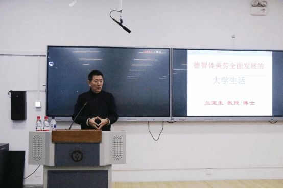 兰教授特别嘱咐同学们,按照新时代党的教育方针要求,大学绝不能“读死书”、“死读书”,必须按照“”德智体美劳”五育并举来规划自己的大学生活,为此,建议同学们:一是要致力于培养良好的人生观和价值观,坚定理想信念、厚植爱国主义情怀。二是要多读书,不要“死读书”,注重科学精神的培养,要“读万卷书,行万里路”,开拓人生视野。三是要树立健康第一的人生理念,在大学期间至少养成一项体育运动爱好,每天锻炼一小时,为党工作五十年。四是学会欣赏美、创造美,“美育之目的,在陶冶活泼敏锐之性灵,养成高尚纯洁之人格”(蔡元培)。五是学会在艰苦中磨炼,在挫折中成长。他以习近平总书记七年知青岁月为例,告诉同学们“劳动最光荣,艰困历练人”。