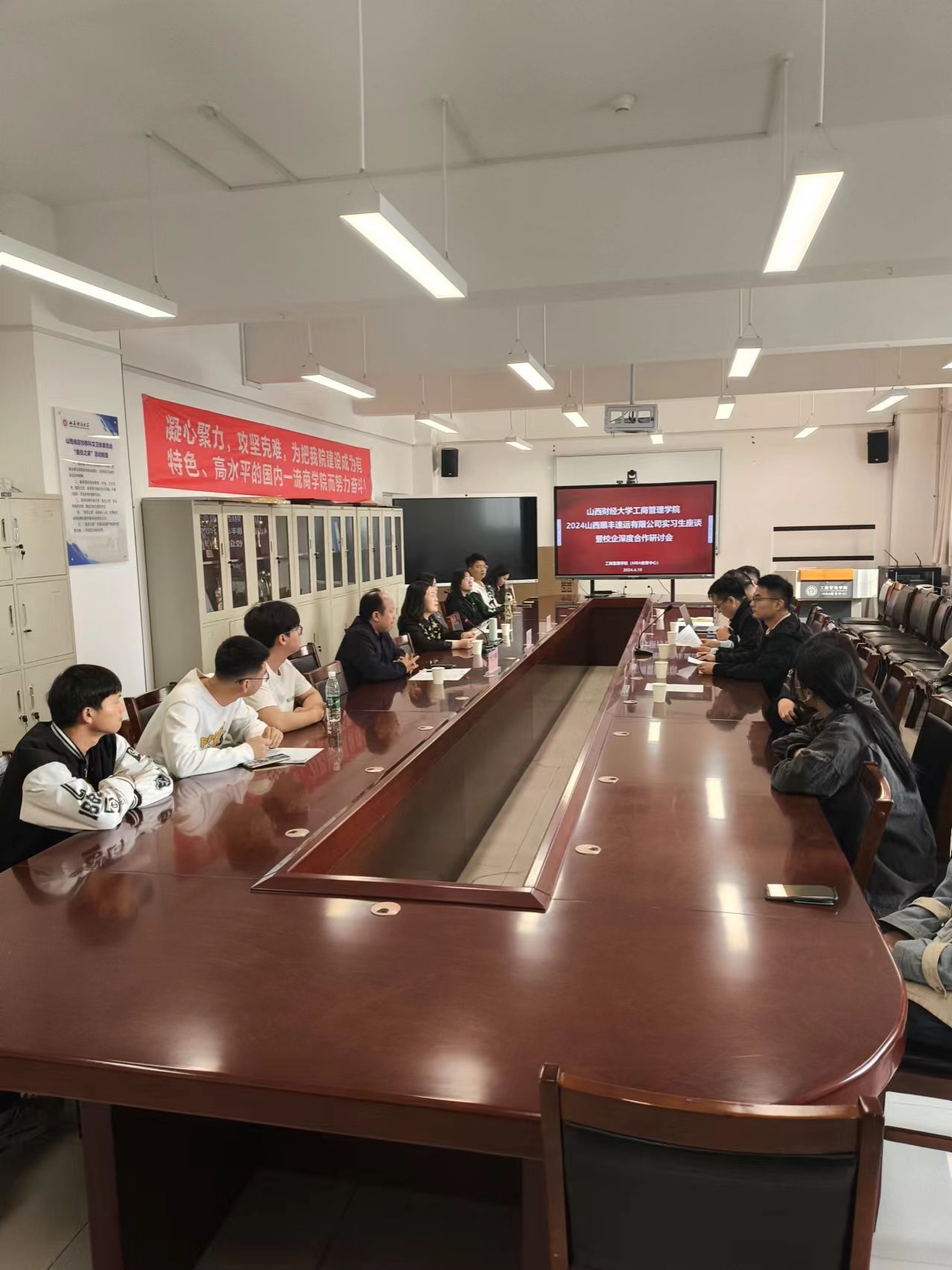 与山西顺丰速运有限公司共同举办了2024山西顺丰速运有限公司实习生座谈会暨校企深度合作研讨会。学院副院长薛继东、顺丰山西区人力资源部负责人靳宏斌和业务方向高管、顺丰校企对接人、物流管理教研室负责人及教师代表、物流专业实习学生代表出席了会议。