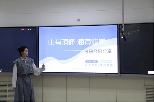 随后,4名不同专业考研上岸的同学们也从他们的备考经验和心路历程进行了分享。分别从时间安排、复习计划、心态调整等方面给同学们提供了宝贵的建议,并鼓励同学们要有信心,坚持不懈地努力,最终一定能够取得好成绩。
