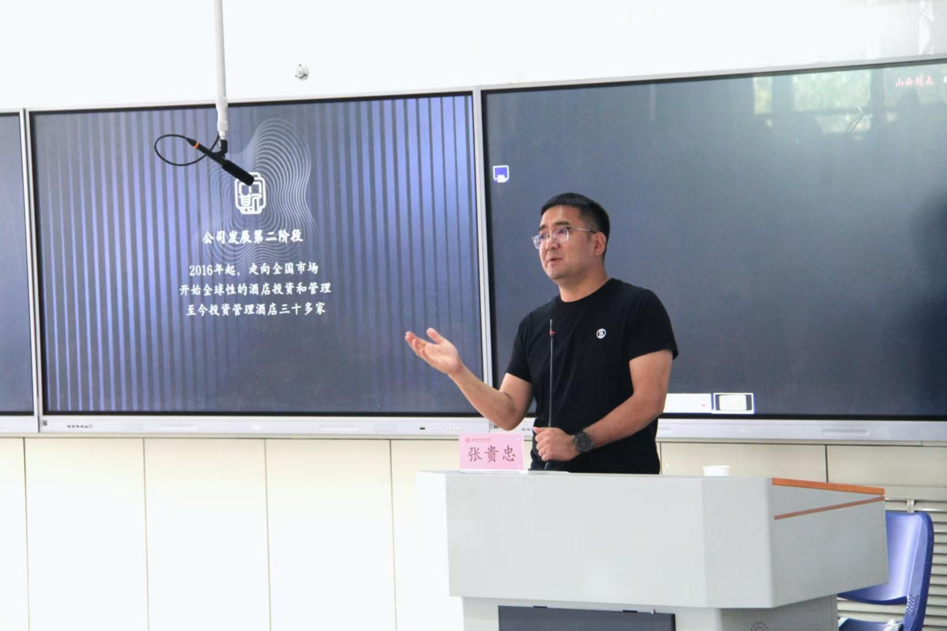 校友、太斯酒店集团公司董事长张贵忠,为同学们带来题为《财大基因之酒店赛道》的专题讲座。学院2023级全体同学200余人参加。学院党委副书记周志刚主持。