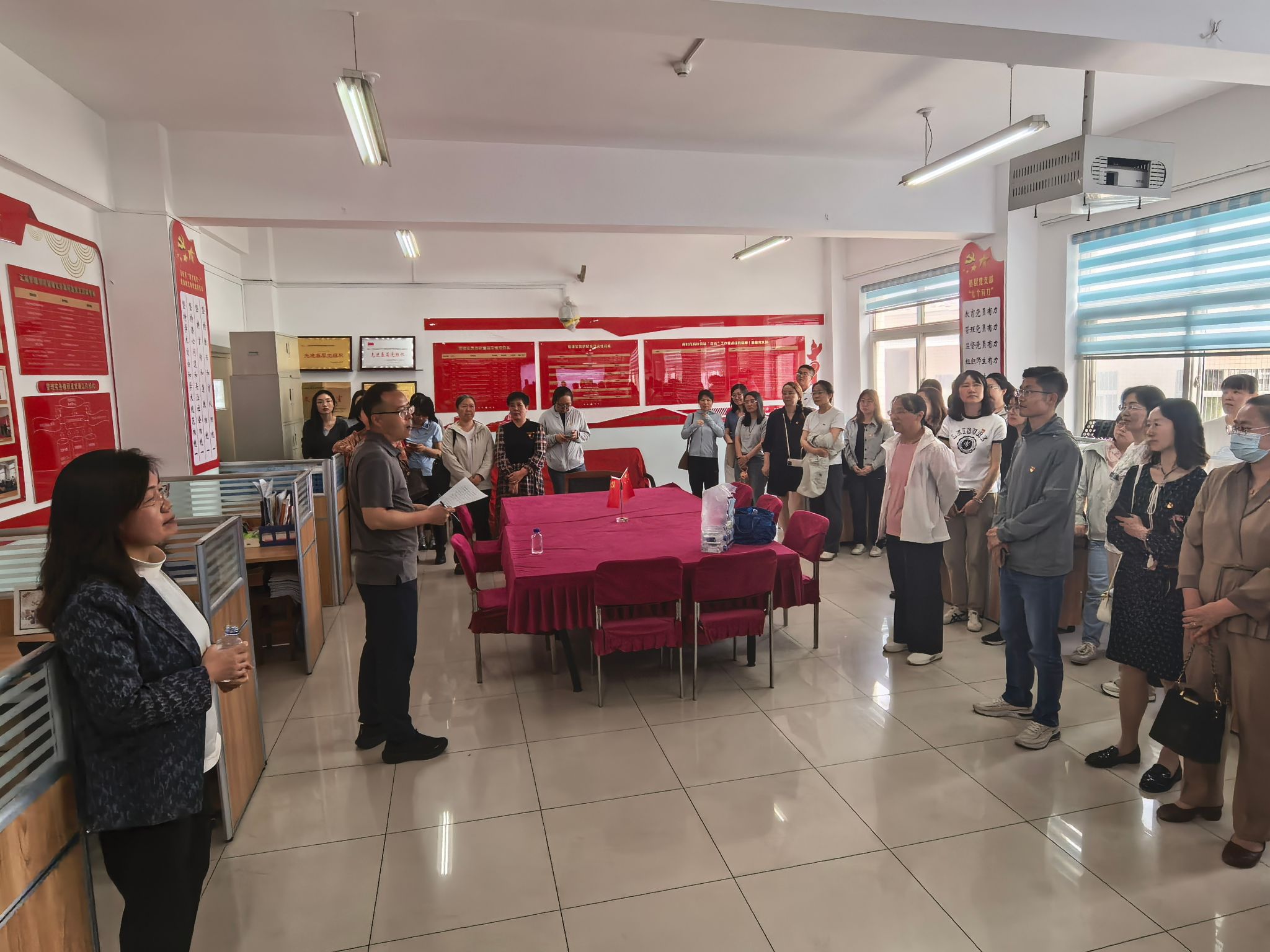 党委组织全体教工党员赴管理实务教研室党支部开展全国样板支部示范交流会。本次活动通过经验分享、实地参观、总结部署和重温入党誓词等环节,进一步凝聚共识、激发活力,为学院党建工作高质量发展注入新动能。