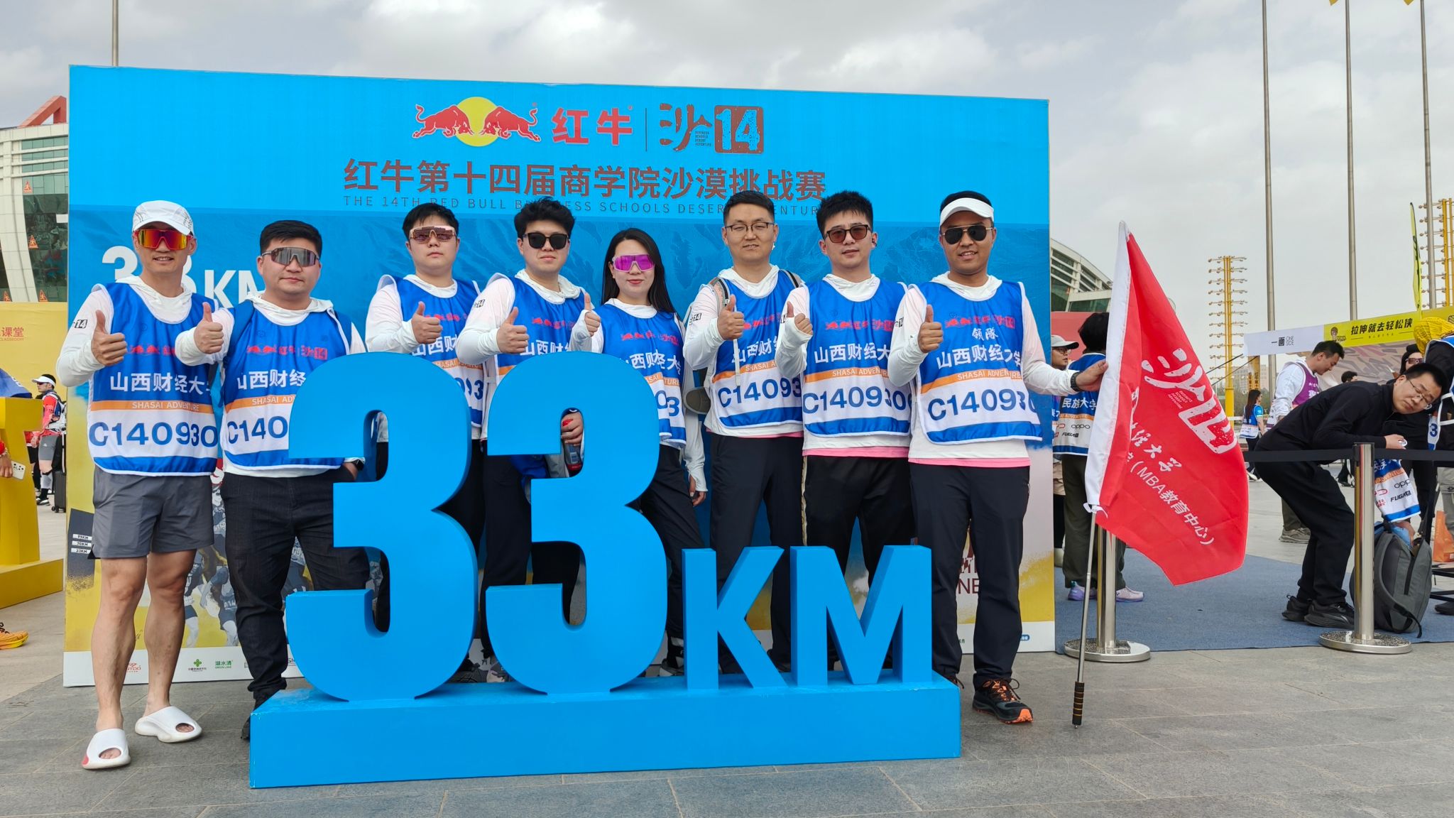 MBA首次组队征战红牛第十四届商学院沙漠挑战赛(沙14),由8名校友与在校生组成的“山财晋商队”,斩获院校“初征驼铃奖”,队员马强更以C组男子第二名佳绩,与徐强、郭杰、武岐、赵佳共同摘得“金沙漏奖”,在苍茫沙海中续写“驼铃穿越三百年”的商道传奇。