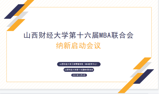 第十六届MBA联合会纳新启动会于12月4日20:00通过腾讯会议线上举行。MBA教育中心全体工作人员、2021级全体MBA班主任、2021级各班班委、第十五届MBA联合会主席团代表参加会议,MBA校友会会长王建勤应邀出席会议。会议由第十五届MBA联合会秘书长郗劲霞主持。