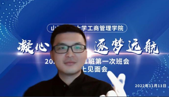 (MBA教育中心)2022级MBA一班通过腾讯会议线上举行主题为“凝心聚力、逐梦远航”的第一次班会暨线上见面会。班会现场气氛欢乐温馨,2022级MBA一班全体师生参会,会议由班长徐李聪主持。