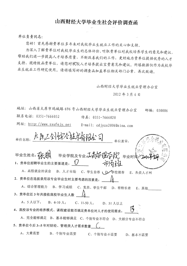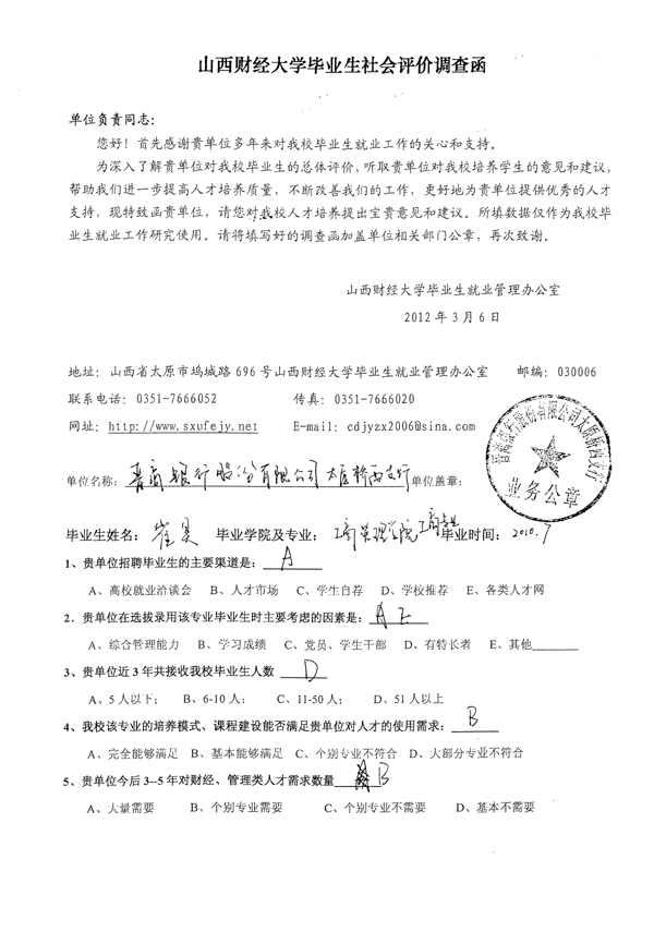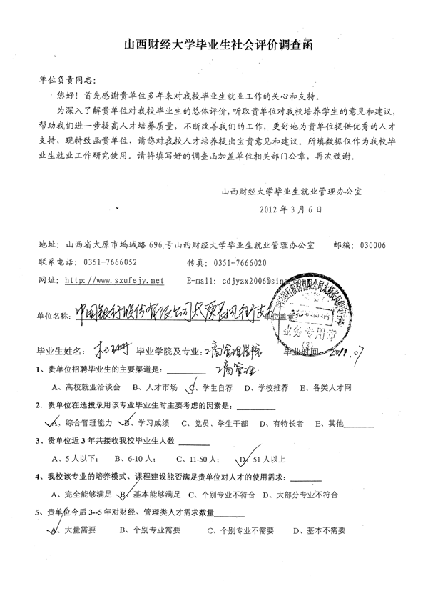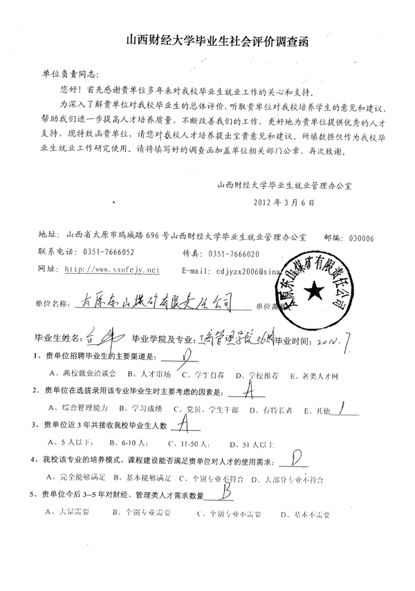 东京热 工商管理专业毕业生社会评价佐证材料汇总