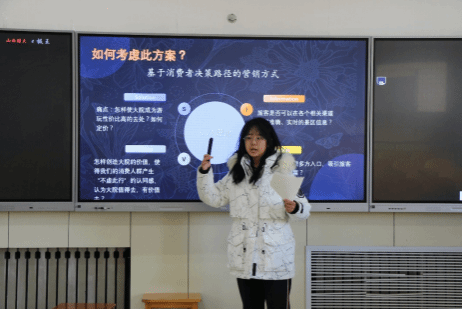 经过一系列培训和反复修改,进入复赛的团队于11月10日提交了参赛策划方案,并于11月12号展示PPT。复赛的7位评审专家均来自市场营销教研室,乔家大院景区营销部曹旭敏部长及其余三位员工旁听了上午的复赛全程,并对各团队方案的丰富性和新颖性表示赞赏。复赛也暴露出一些问题,比如PPT展示时间控制不好、解决方案和问题匹配度不高、方案可行性不强等,评审专家对大部分方案都提出了改进意见。