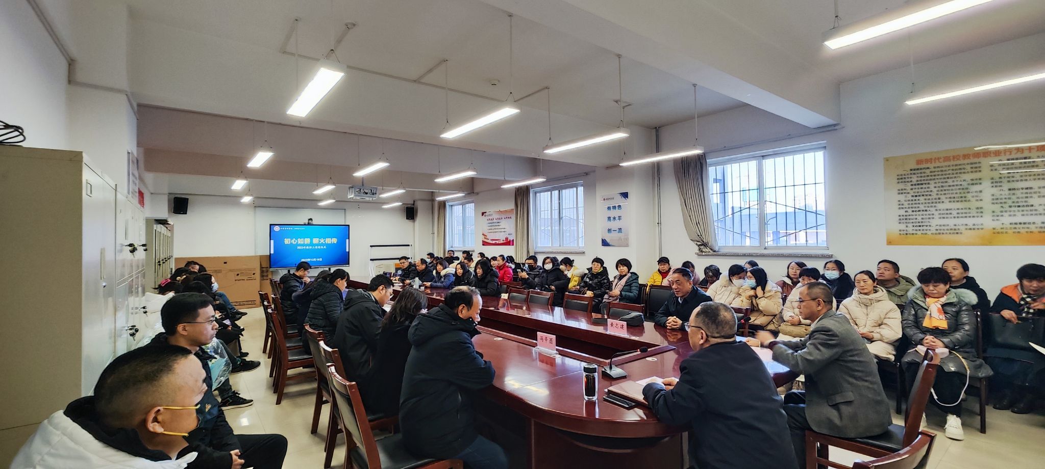 在会议室为2023年退休教职工举行荣退仪式。学院领导、全体教职工、2023年退休教师等参加会议。会议由学院党委书记高岳主持。