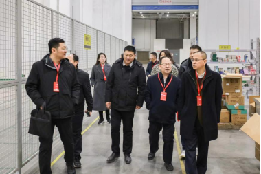 调研组一行首先来到山西顺天立集团旗下的山西万美医药科技有限公司进行考察。万美医药是一家专业的第三方医药物流公司,主要服务省内零售连锁药店、单体药店、基层医疗诊所。调研组成员参观了公司智能化的医药仓储、分拣、运输设施设备,包括不同温度的冷库、红蟹四向穿梭车、垂直螺旋提升机、C型连续式提升机、拆/叠箱机等,并对医药物流的储运规范、作业流程以及公司降本增效的具体措施进行了详细了解。