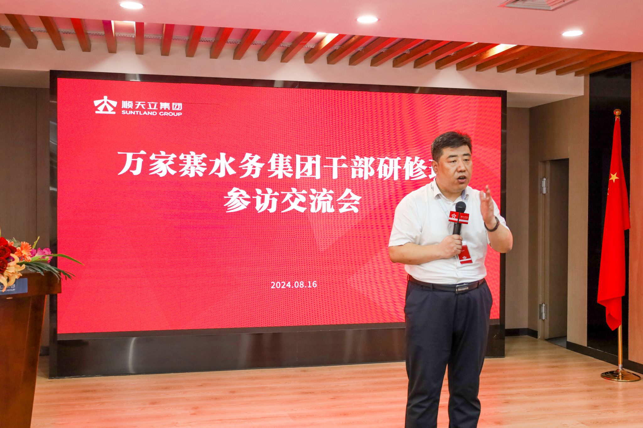 及万家寨水控集团携手“相遇精诚,共事征程”的合作期待。卫虎林院长对顺天立集团及胡瑾瑜董事长的热情接待表示衷心感谢,并向与会者介绍了万家寨水控集团青年干部研修班的相关情况。卫院长强调,举办本次青年干部管理能力提升研修班充分体现了万家寨水控集团对人才培养的高度重视,学院精心安排了这次企业参访活动,希望通过这次活动加强企业之间的互学互鉴、共促共进。尤其是顺天立集团作为全国具有代表性的大健康民营企业,其“传承不守旧、创新不离宗”的经营宗旨、“数字化、数智化、数治化”的管理模式、“自强不息、坚韧不拔”的创业精神、“脚踏实地、无私无畏”的骆驼精神都值得各位学员认真思考。