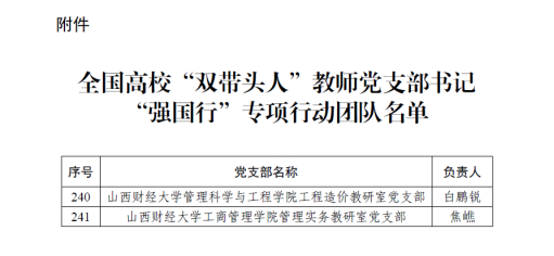 管理实务教研室党支部成功入选全国专项行动团队。
