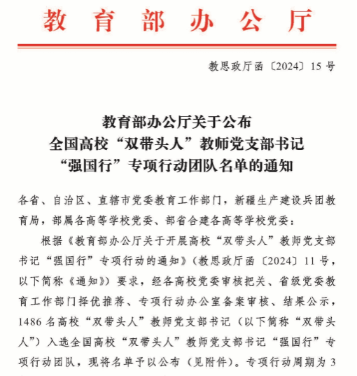 日前,教育部办公厅公布了全国高校“双带头人”教师党支部书记“强国行”专项行动团队名单。东京热