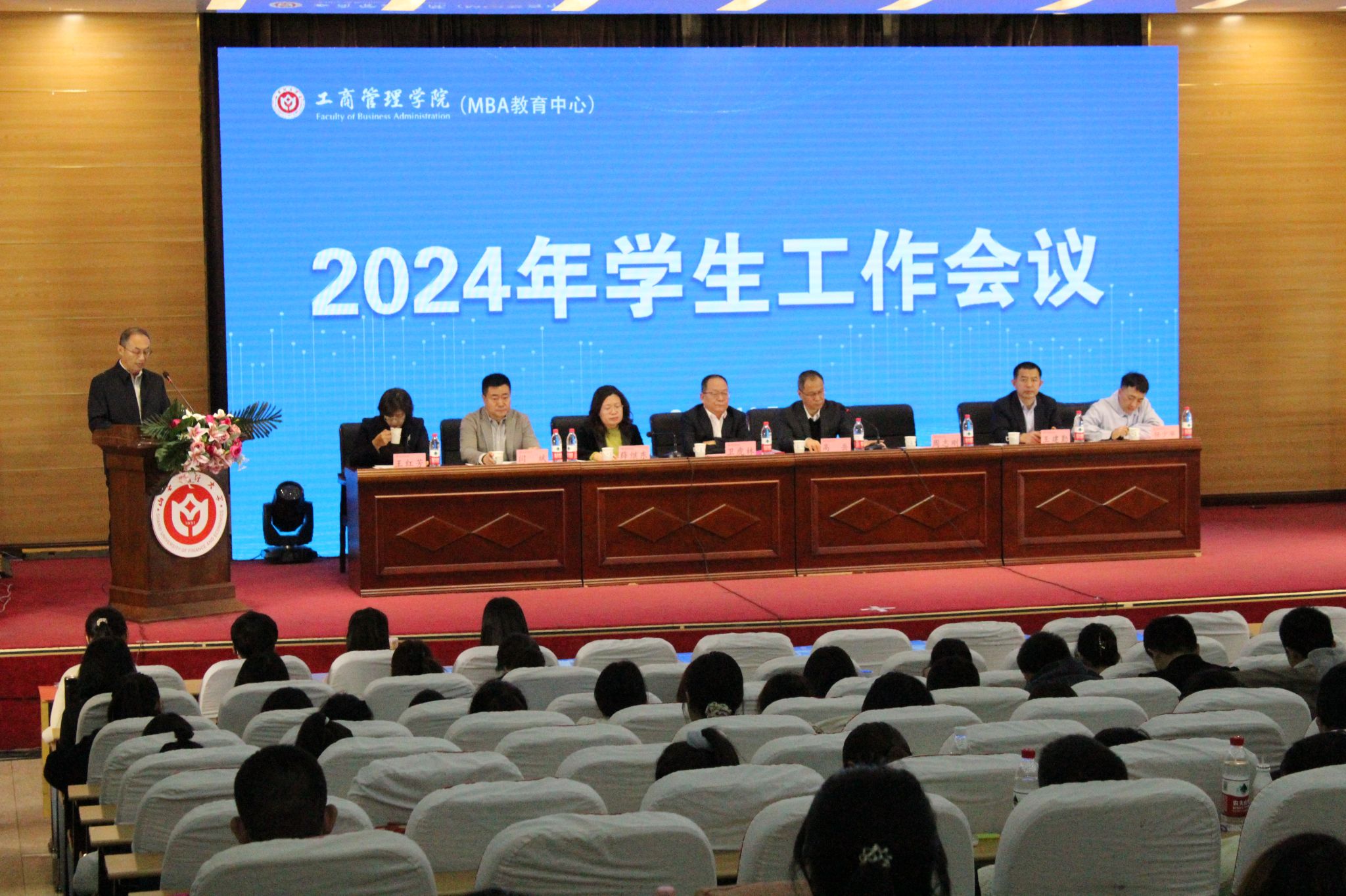 在立信楼报告厅隆重举行2024年学生工作会议。学院领导班子成员、2024级本科生和学术研究生、团学干部、MBA学生代表等参加会议。东京热