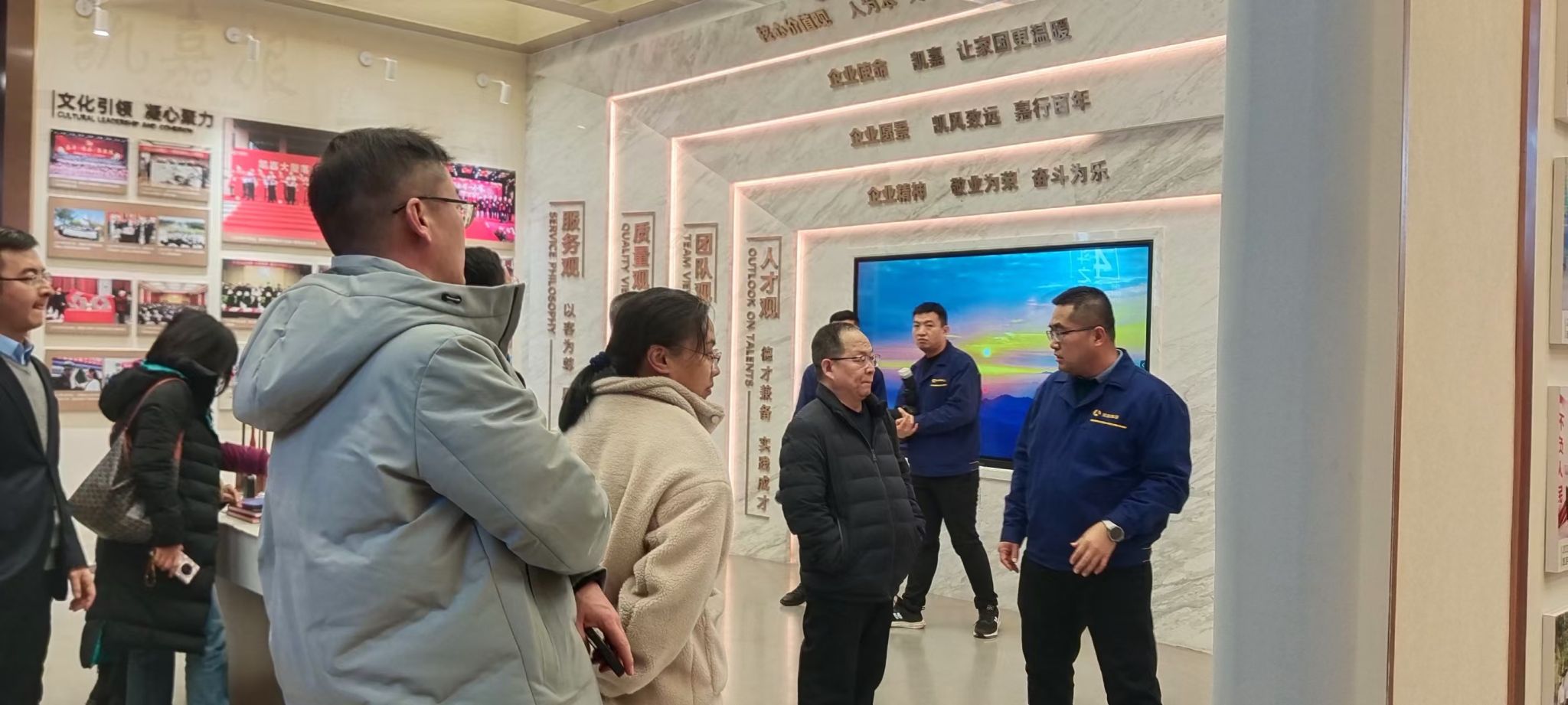 一行人首先参观了凯嘉集团创研大厦文化展厅与数字化调度指挥中心,了解了凯嘉集团的发展历程、东京热、经营管理及其智能化生产调度系统,尤其是凯嘉集团富有社会责任感的使命、愿景和企业目标有助于领会张壁古堡文旅项目建设的初心。