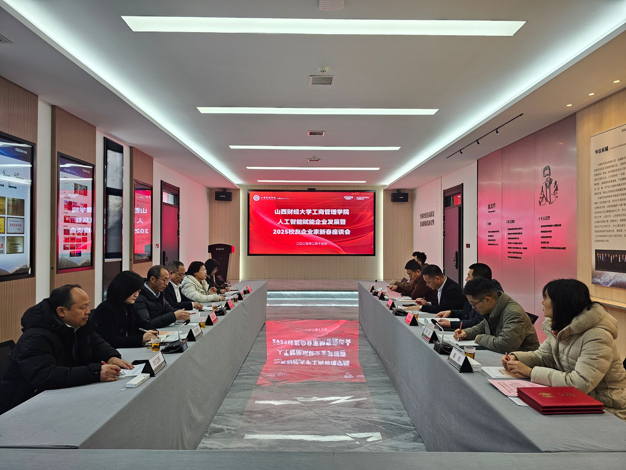 在校外人才培养基地长城电气股份有限公司举办“人工智能赋能企业发展暨2025校友企业家新春座谈会”,学院领导班子全体成员、MBA教指委校外专家、各教研室主任等参加会议。会议由薛继东副院长主持。