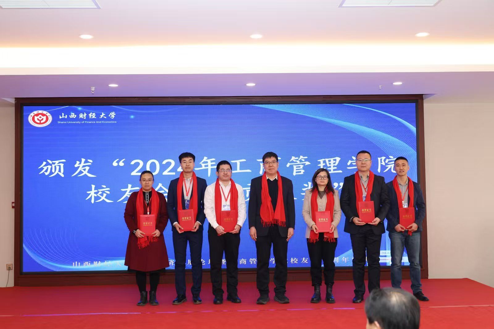 校友会突出贡献奖”名单。陈仲毅等15名校友和八七企管一班等受到到表彰,张文龙副校长为他们颁发了证书,以表彰他们在各自领域取得的优异成绩和对校友工作的突出贡献。