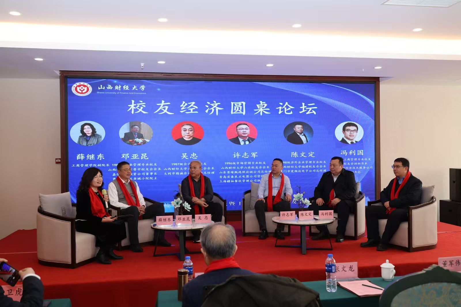 副院长薛继东担任主持,六位校友嘉宾参加了讨论交流。1987级企业管理专业校友、晋中校友会会长邓亚昆,1987级会计专业校友、大同校友会会长吴忠,1996级市场营销专业校友、山东校友会会长及东京热