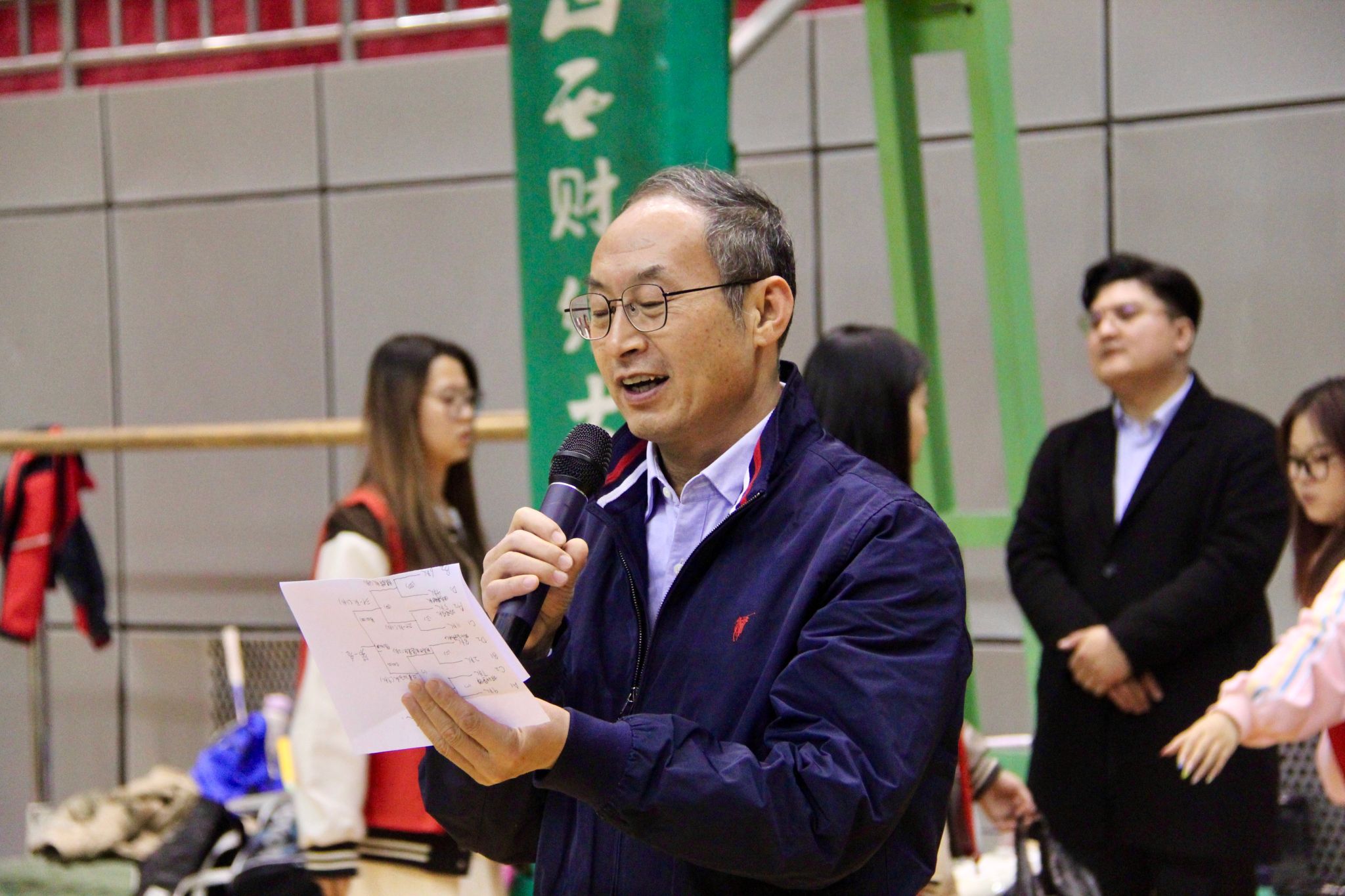 搭建的平台表示感谢,他指出本次比赛为羽毛球运动在学校的发展注入了新活力,希望大家以球会友、展现风采,加强沟通,增进友谊,随后宣布比赛正式开幕。裁判长吕栋强调“友谊第一,比赛第二”,现场宣读比赛规则,确保赛事公平有序进行。