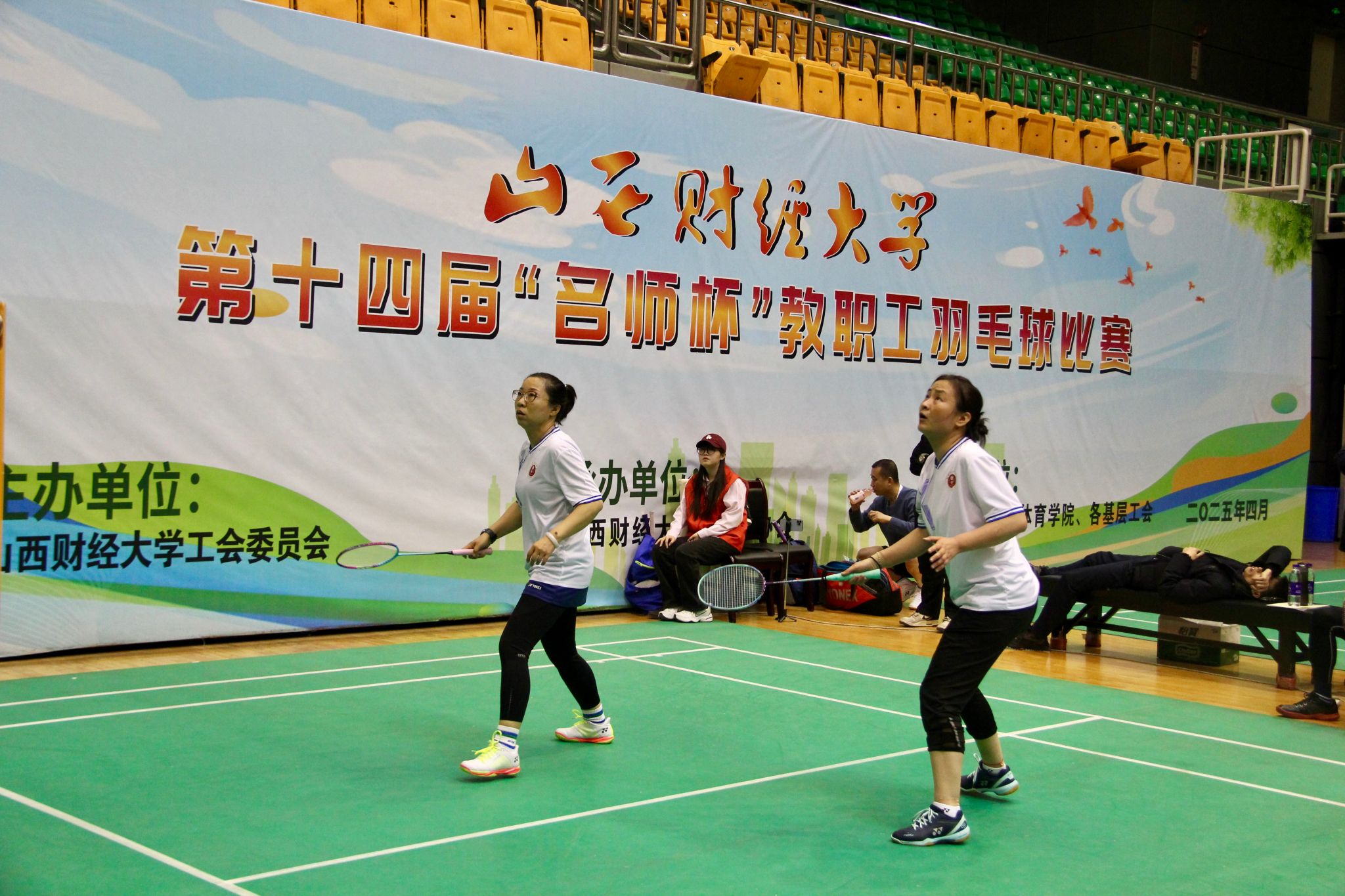 随后,12支参赛队伍展开激烈角逐,选手们灵活挥拍、奋力扣杀,既有战术博弈的智慧,亦有团结拼搏的热血,充分展现了教职工和校友们昂扬向上的精神风貌。