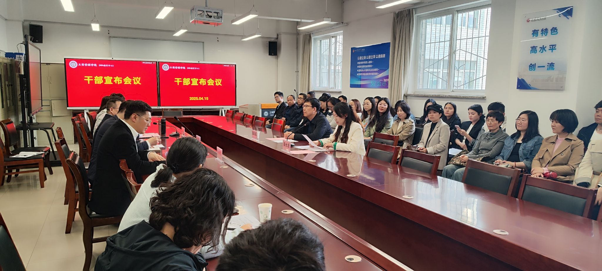召开干部会议,宣布有关人事任免决定。校党委常委、副校长张文龙,校党委组织部干部科科长苗世清出席会议。学院全体领导、全体教职工参加会议。会议由卫虎林院长主持。