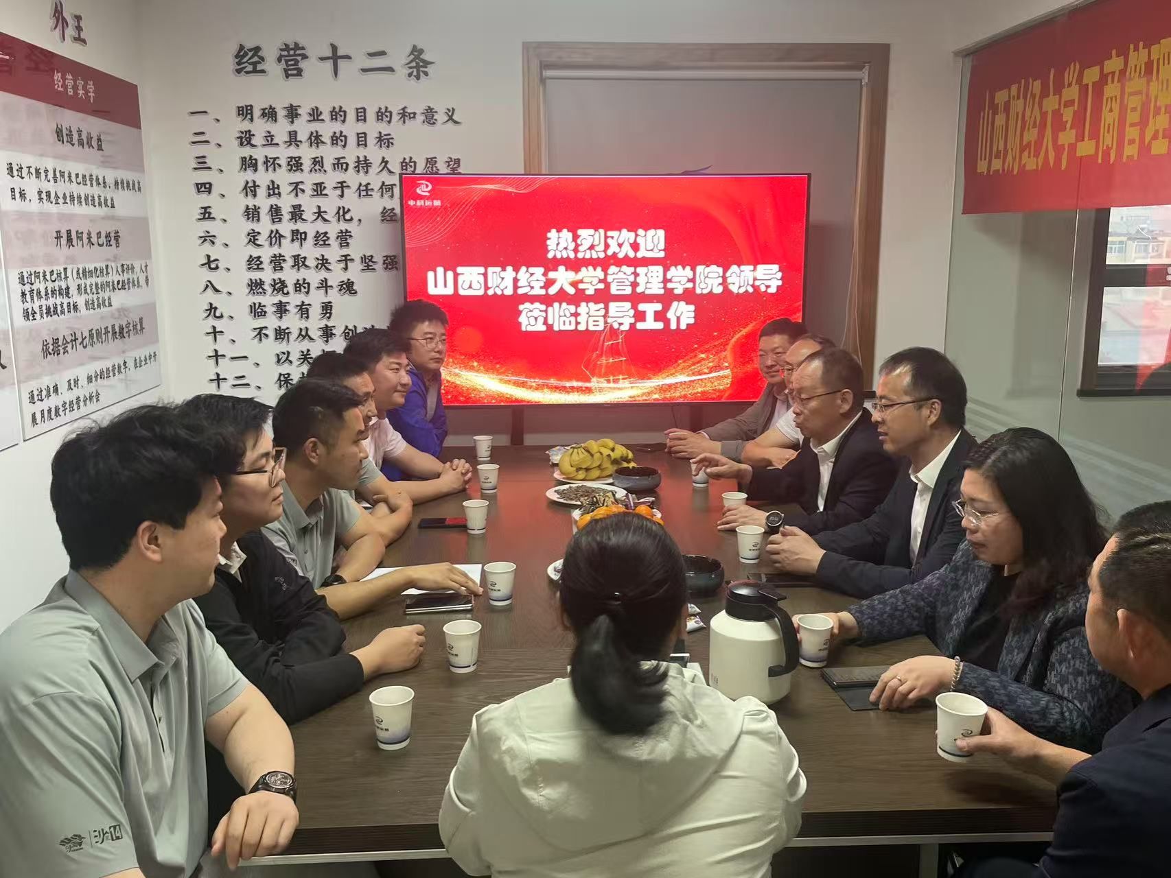 5月6日下午,卫虎林院长一行走进校友企业中科远航建设有限公司,开展访企拓岗活动并举行“沙14”参赛代表队凯旋座谈会。学院领导班子全体成员、院工会主席、MBA校友会会长、“沙14”全体参赛队员等参加了此次活动。