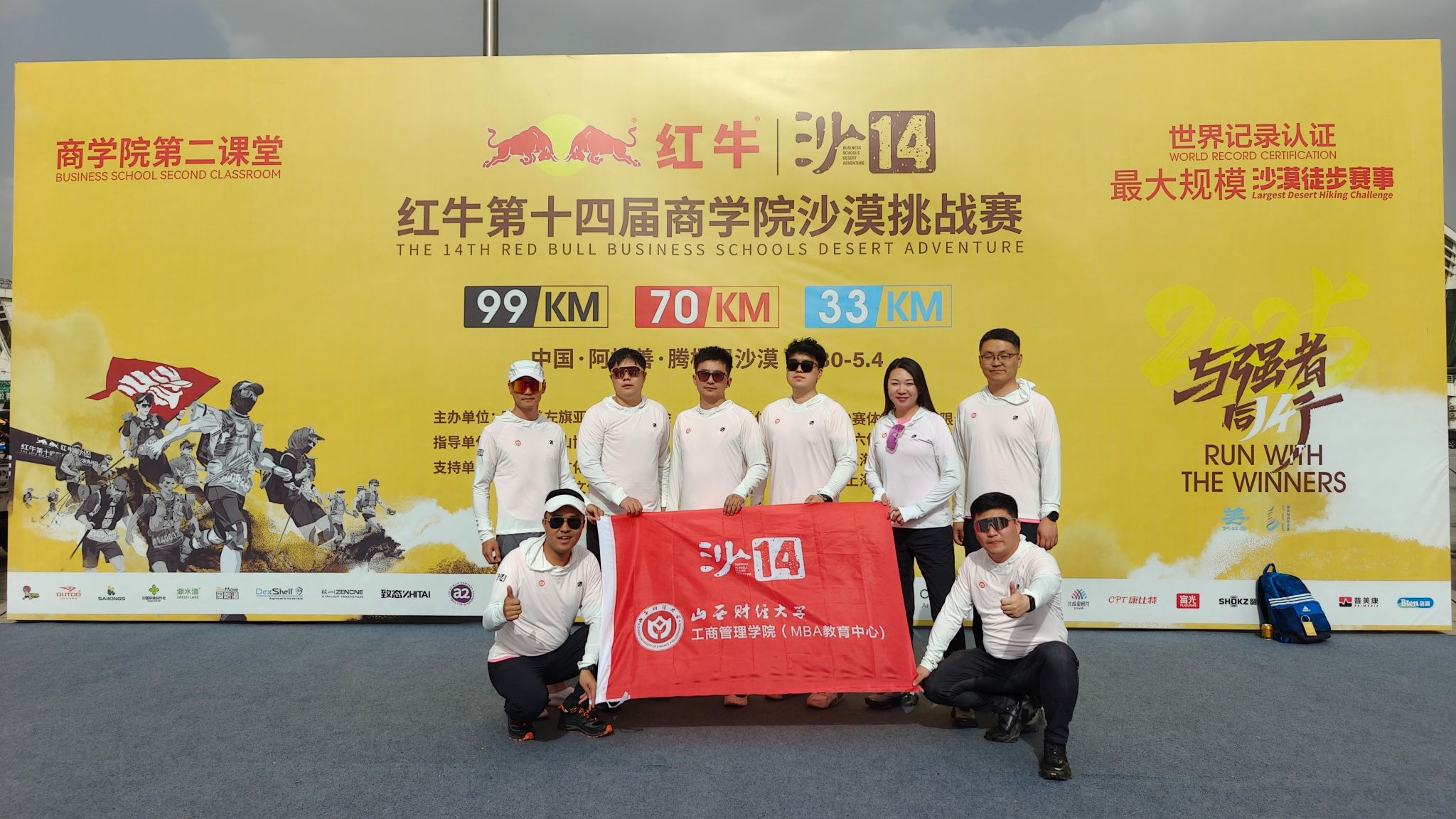 八名参赛队员全部安全完赛,并获得院校级荣誉“初征驼铃奖”。2018级MBA学员马强获得C队男子组第二名,马强、徐强、郭杰、武岐、赵佳5人获得“金沙漏奖”。
