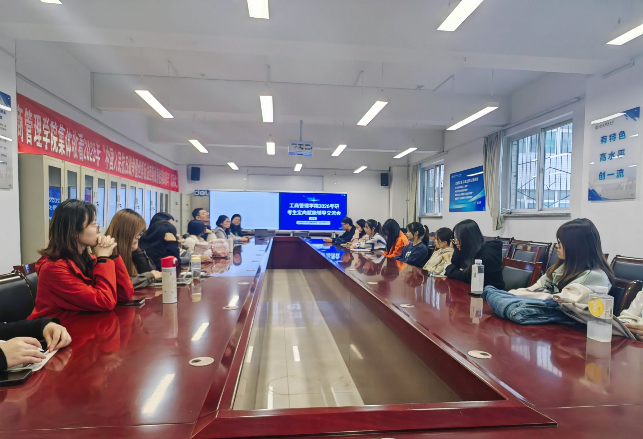 郭淑芬在总结中重申,学院尊重每位学生的志愿,并承诺全体教师将全力为考研学子提供全方面支持——涵盖择校咨询、学业答疑与心理疏导等各方面。她鼓励同学们坚定信心,理性选择,预祝大家在2026年考研中取得优异成绩,圆梦目标院校。