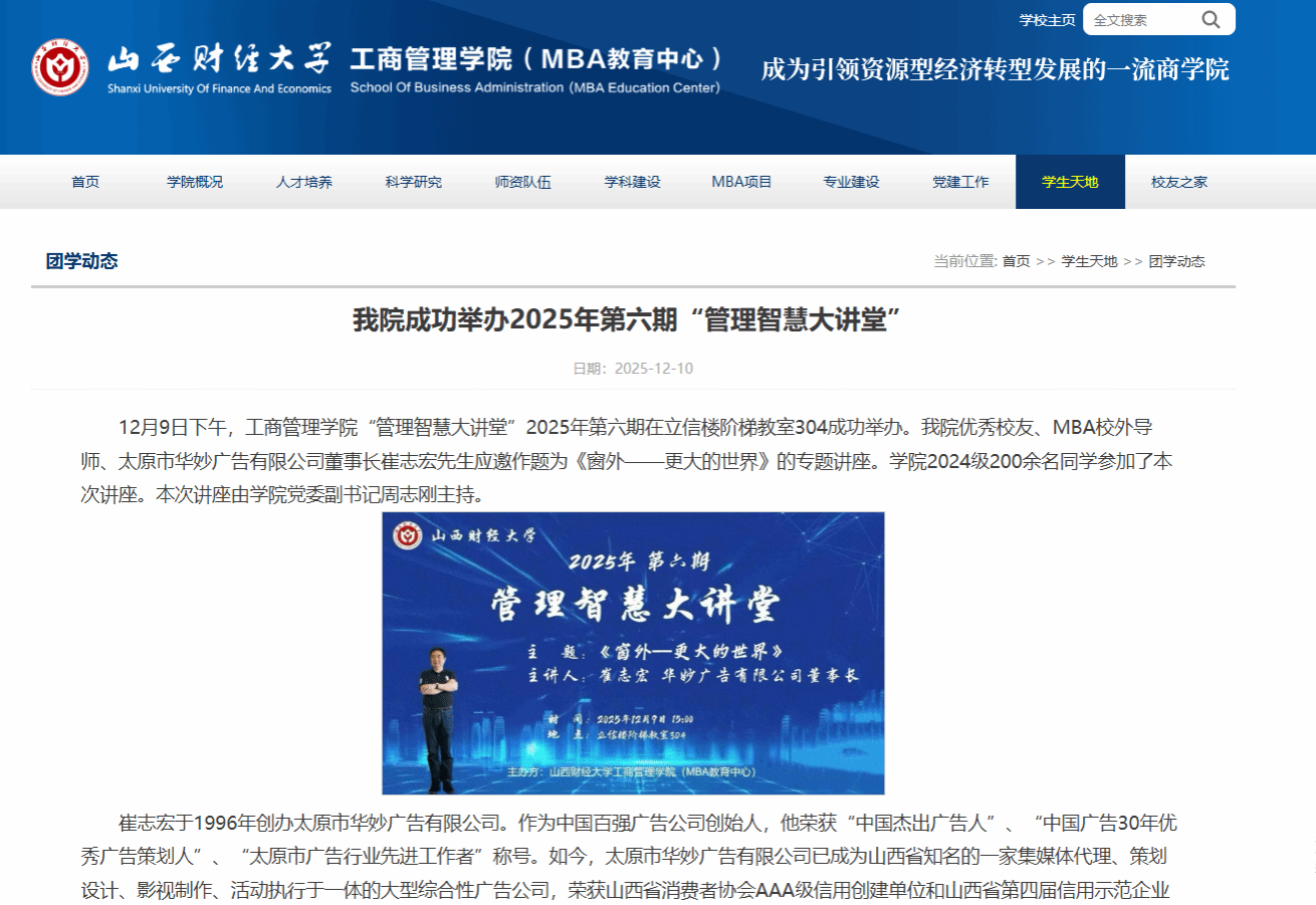 学术盛宴:多元活动,提升学生综合素养。学风建设月期间,学院举办了工商名家大讲堂、管理智慧大讲堂、振东管理大讲堂等系列学术活动,邀请了国内顶级专家学者和企业精英来校讲学,拓宽了学生的学术视野。同时,学院还组织了职业规划大赛、学术演讲等学科竞赛,为学生们提供了展示自我、锻炼能力的舞台,激发了学生的学习兴趣和创新精神,培养了学生的实践能力和团队协作精神。