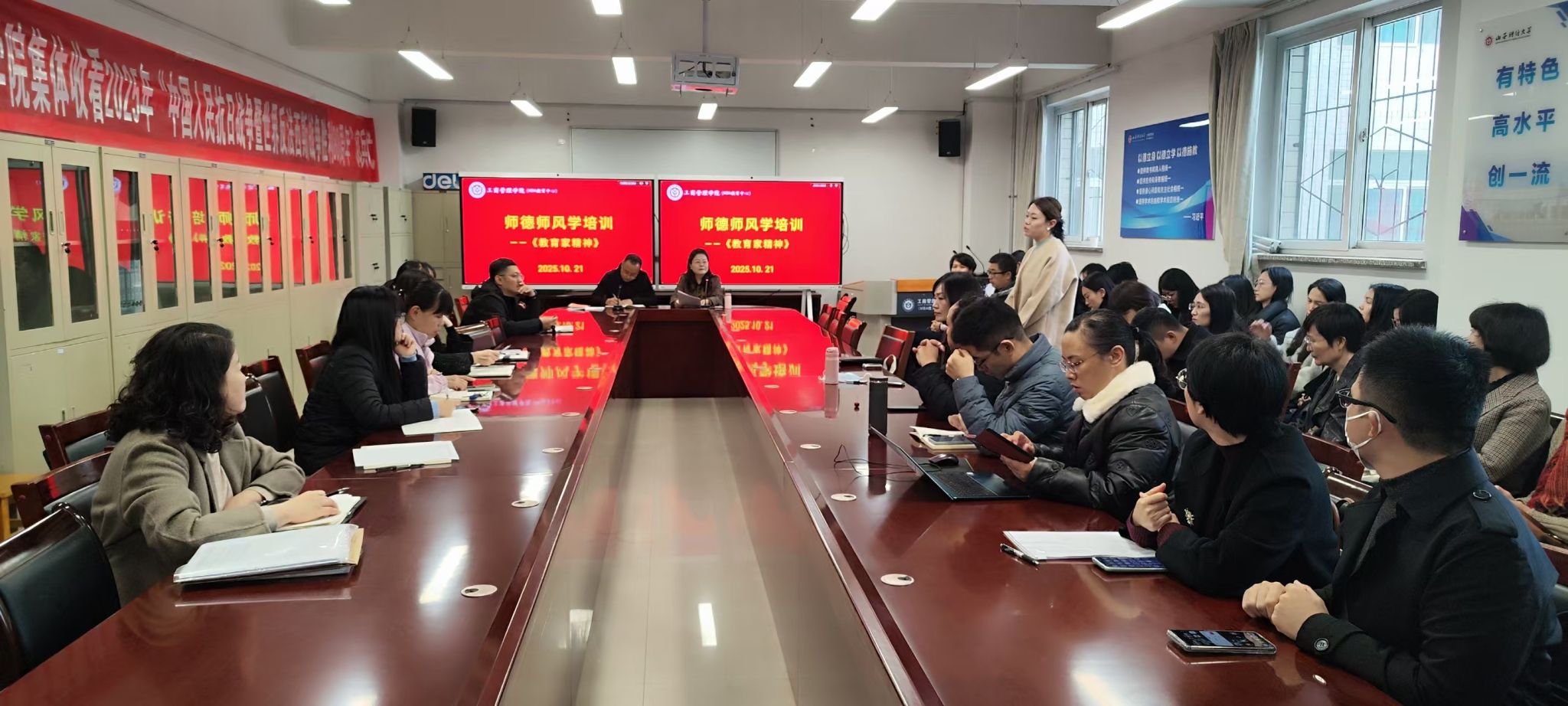 教学革新:名师领航,激发教学最大潜能。教师作为学风建设的核心,其教学质量与创新对学院学风与人才培养至关重要。为提升教学质量,激发教学潜能,学院采取多项举措。启动教师教学创新大赛,以赛促教,激发教师教学热情,推动教学方法创新;组织集体备课研讨,齐永智副院长等老师分享备课心得与教学经验,为教师提供宝贵参考;参与专业建设研讨,郭淑芬院长汇报学院专业建设与课程改革成效,贡献工商智慧;参加卓越人才培养实验班进展汇报会,薛继东副院长汇报实验班招生、培养及成果,展示学院卓越人才培养探索;教师经验分享,周莉清、赵皓宇、郭金花、陈蕴琦、田光迪等优秀教师在学院例会上分享学科竞赛获奖、教学心得及科学研究成果,为教师提供学习借鉴;编写小学期实践能力培养活动成果展示图,生动呈现学生实践成长与收获;完成2024-2025学年本科教学质量报告,全面总结分析教学质量,为未来提升提供依据。