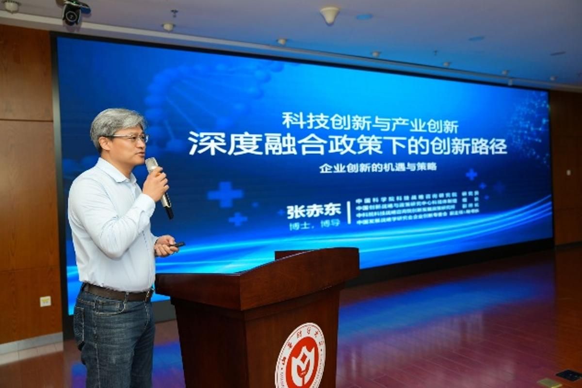 中国科学院科技战略咨询研究院张赤东研究员,聚焦“科技创新与产业创新深度融合政策下的创新路径”,系统梳理了科技创新驱动产业创新的基本路径与模式,并结合数字经济时代的新范式,深入阐释了企业科技成果转化的重要性和技术创新的“三梁五柱”政策体系。