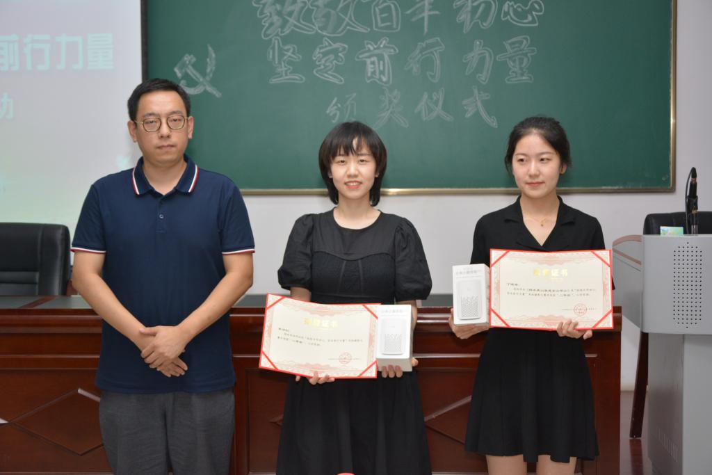 张芳老师为获得三等奖的程蕊、张琳莉、张乃文颁奖。
