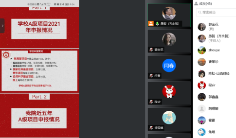 通过线上方式召开2022年度国家级项目申报推进会。卫虎林院长、齐永智副院长、教研室主任、学院所有具有博士学位的教师和科研秘书参加会议。