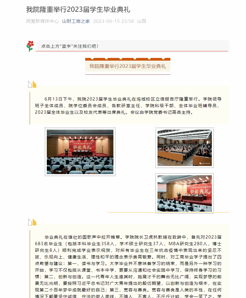 2023届学生圆满完成学业,即将奔赴新的征程。祝2023届学生毕业愉快,前程似锦、幸福安康!