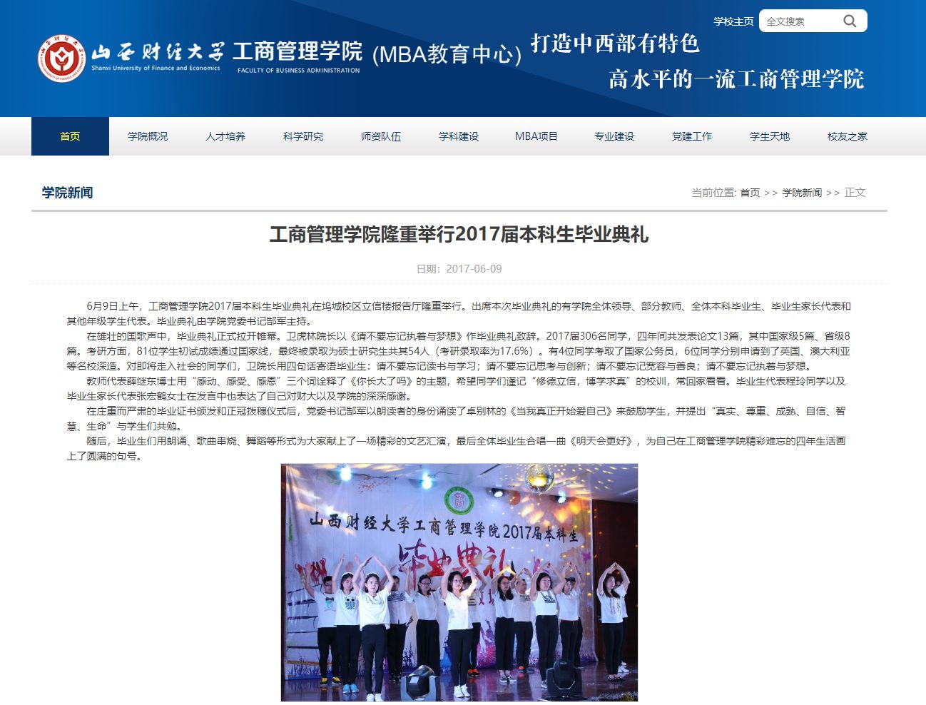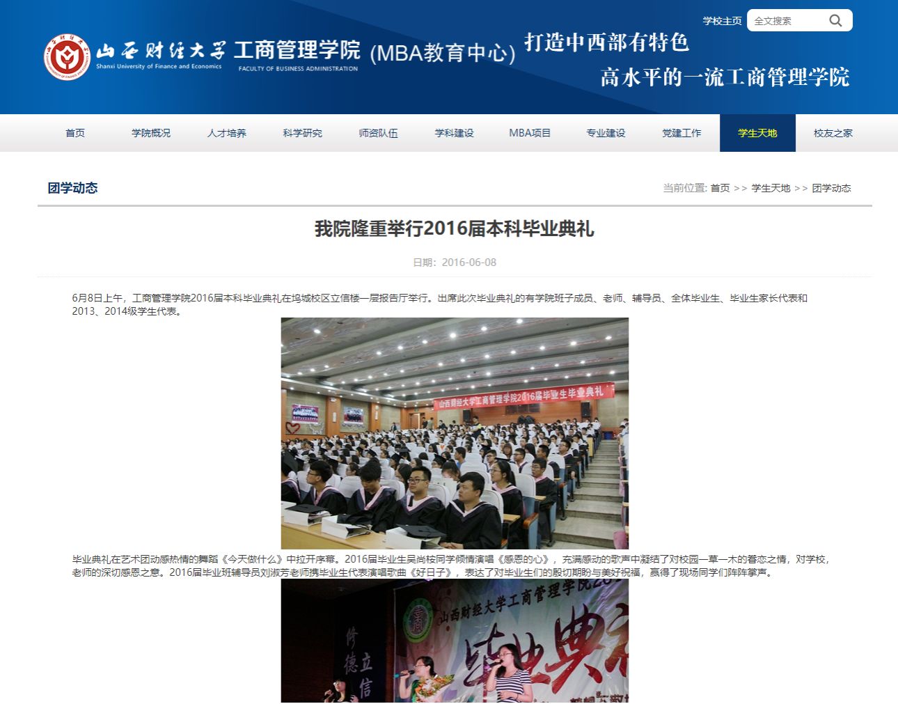 典礼结束后,所有参会人员共同欣赏了由院团委、学生会组织的《情系工商 梦想远航》毕业文艺汇演。