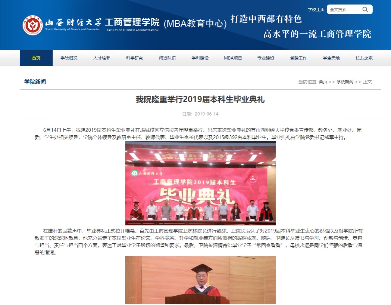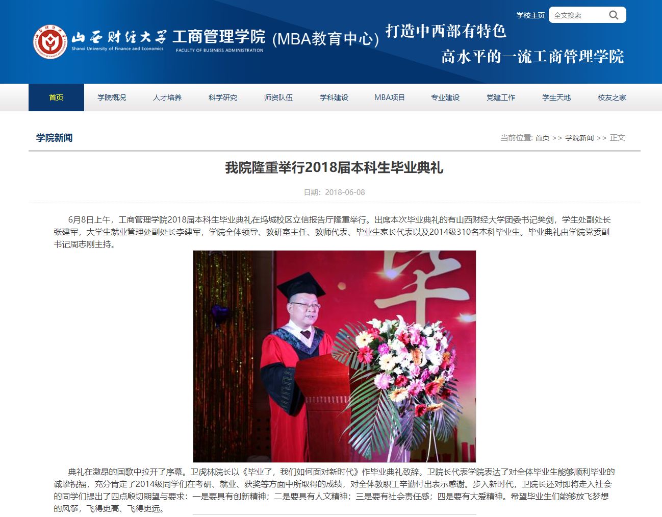卫虎林院长在毕业典礼致辞中,回顾了本届学生求学期间学院在人才培养、学科建设、服务社会等方面取得的主要成绩,指出东京热