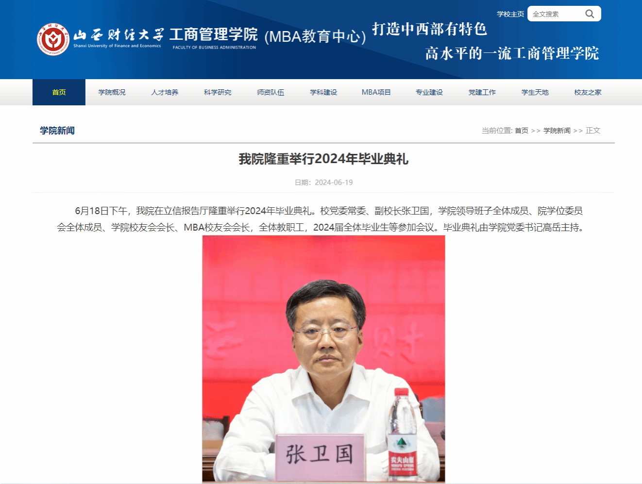 校友会会长、MBA校友会会长,全体教职工,2024届全体毕业生等参加会议。毕业典礼由学院党委书记高岳主持。