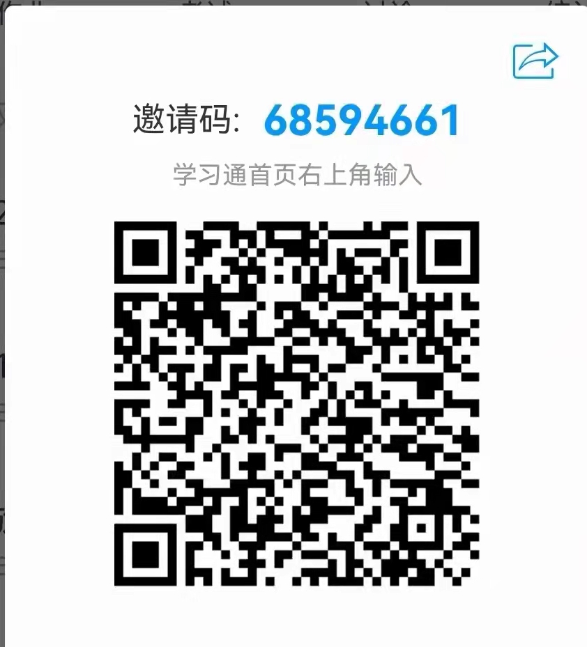 下载并注册“学习通”APP,在主页 点击右上角方框扫描下图二维码(或输入邀请码68594661)。