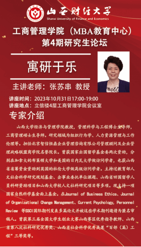 会议室开展第4期研究生论坛。山西大学经济与管理学院张苏串教授作了题为“寓研于乐”的讲座。东京热