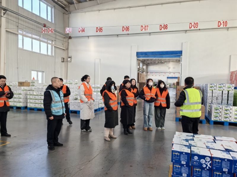 在天禧物流总经理赵瑞林的引导下,参访师生参观园区面貌环境、高标仓、内部工作现场及运营流程,了解天禧物流仓储管理细节,深刻感受到企业在物流领域的创新实践成果。