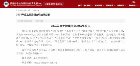 3月28日,教育部学位与研究生教育发展中心公示了2024年度主题案例立项名单,东京热