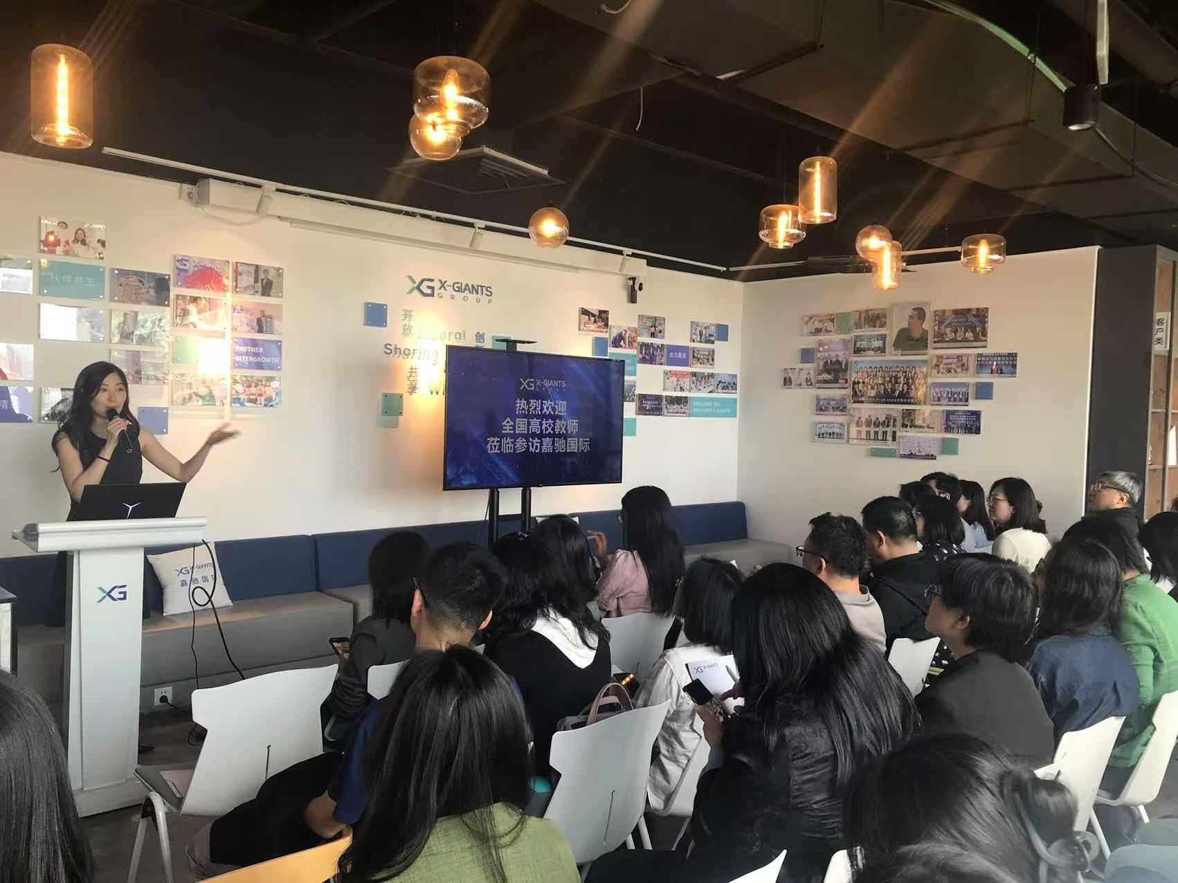 参会教师走进了上海嘉驰商务咨询有限公司(以下简称“嘉驰国际”),实地参访这家以科技数据驱动的一站式人力资源整体解决方案服务商。