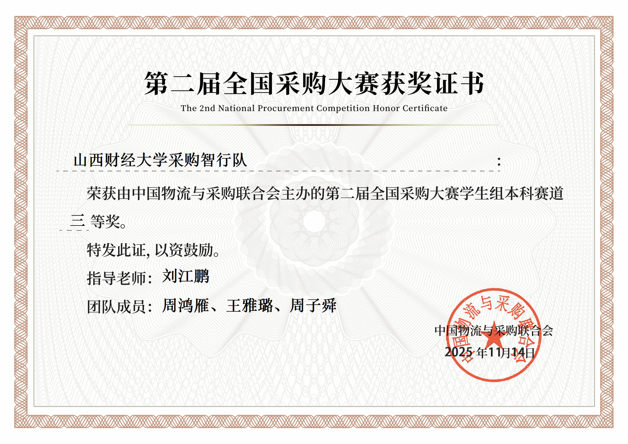 “采购智行队”沉着冷静、配合默契,凭借其严谨的逻辑分析、紧密配合以及对局势的精准把握,最终获得全国三等奖。