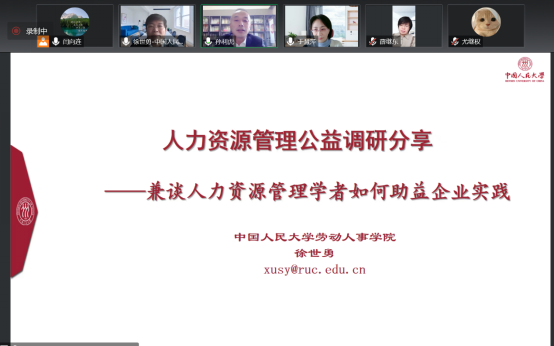 人力资源管理教研室通过腾讯会议在线举办了第二期人力资源管理教学研讨会。中国人民大学徐世勇教授做了题为“人力资源管理公益调研分享——兼谈人力资源管理学者如何助益企业实践”的讲座。包括人力资源管理教研室全体人员在内的学院教师共40余人参加了此次讲座,讲座由孙利虎副教授主持。