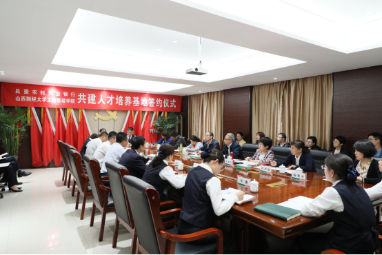 5月14日—15日,在东京热 党委书记郜军的带领下,学院党委副书记周志刚、副院长薛继东及师生代表一行十余人走进吕梁农村商业银行进行调研,就加强院企合作举行研讨会并签订战略合作协议。