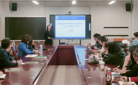 在会议室举行“审核评估大家谈”系列活动第五讲,马燕翔老师就OBE理念在本科教学设计中的应用进行了主题分享。学院领导和全体教职工参加会议,会议由薛继东副院长主持。