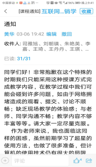 3、讨论学习应用知识点。结合目前疫情提供了关于远程办公、网络教育等问题的案例材料,让学生结合营销环境的变化和自己的实际情况提出看法,因为讨论题对于学生来说都是参与者和关注者,同时大家也和我一样也为此矛盾和困惑,55名同学,59份回复,大家讨论积极热烈。我也进行了评价和追问,引发学生深入思考营销理论在实践中的运用。