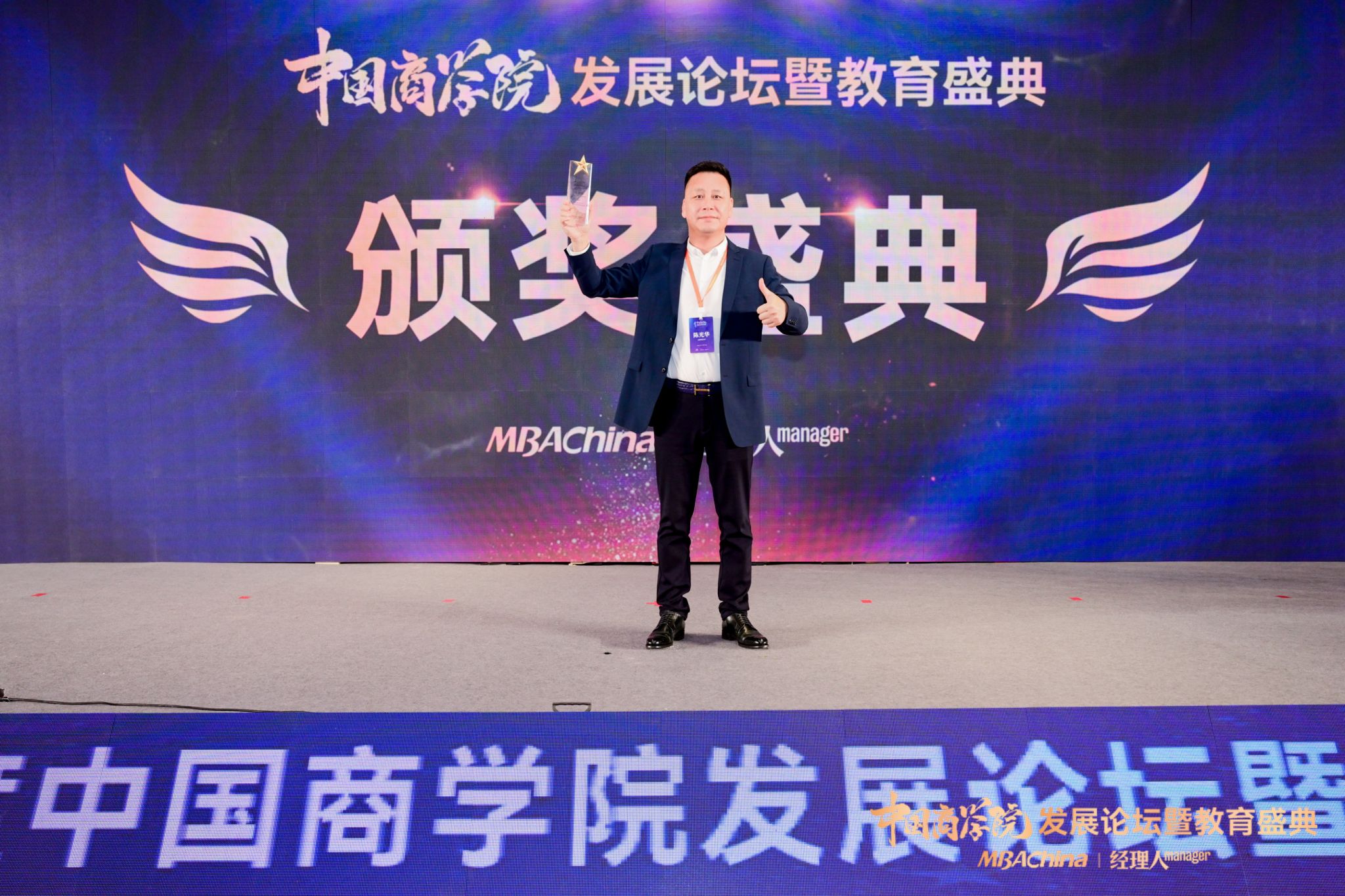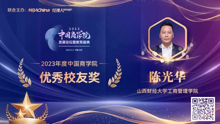 MBA教指委校外委员和客座教授等。为此,特为陈光华校友颁发“2023年度中国商学院MBA项目优秀校友奖”。(MBAChina网 供稿)