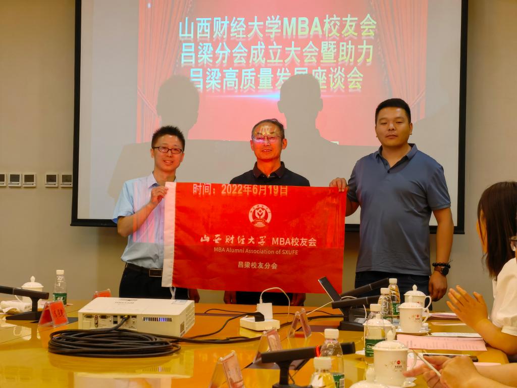 MBA校友会吕梁校友分会授牌、授旗以及分会向MBA校友会捐赠仪式。(东京热