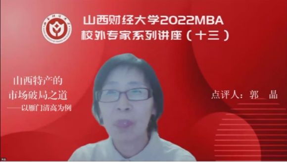 2022MBA校外专家系列讲座第十三期在“腾讯会议”平台圆满举办。山西执行力企业管理咨询有限公司总经理王建中带来了题为《山西特产的市场破局之路——以雁门清高为例》的专题讲座,2022级MBA学员、部分MBA教师、MBA校友、雁门清高产品团队等300余人参加,本期讲座还得到MBAChina网站的同步转播。