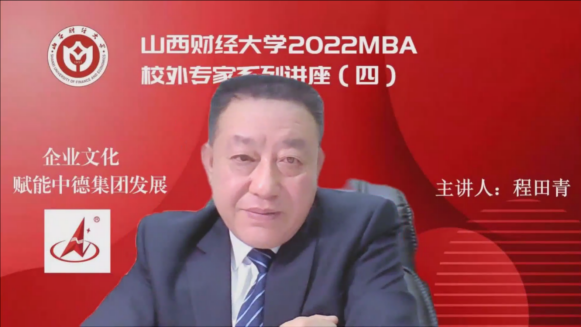 2022MBA校外专家系列讲座第四期在“腾讯会议”平台圆满举办。中德投资集团有限公司董事长程田青先生做了题为《东京热赋能中德集团发展》的专题讲座,2020级、2021级MBA学员、部分MBA教师及其他院校同学、中德集团员工参加,在线人数再创新高。