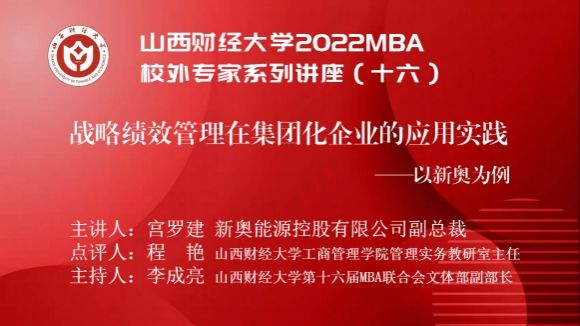 2022MBA校外专家系列讲座第十六期在“腾讯会议”平台圆满举办。新奥能源控股有限公司副总裁宫罗建带来了题为《战略绩效管理在集团化企业的应用实践——以新奥为例》的专题讲座,2022级MBA学员、部分MBA教师、MBA校友等300余人参加,本期讲座还得到MBAChina网站的同步转播。